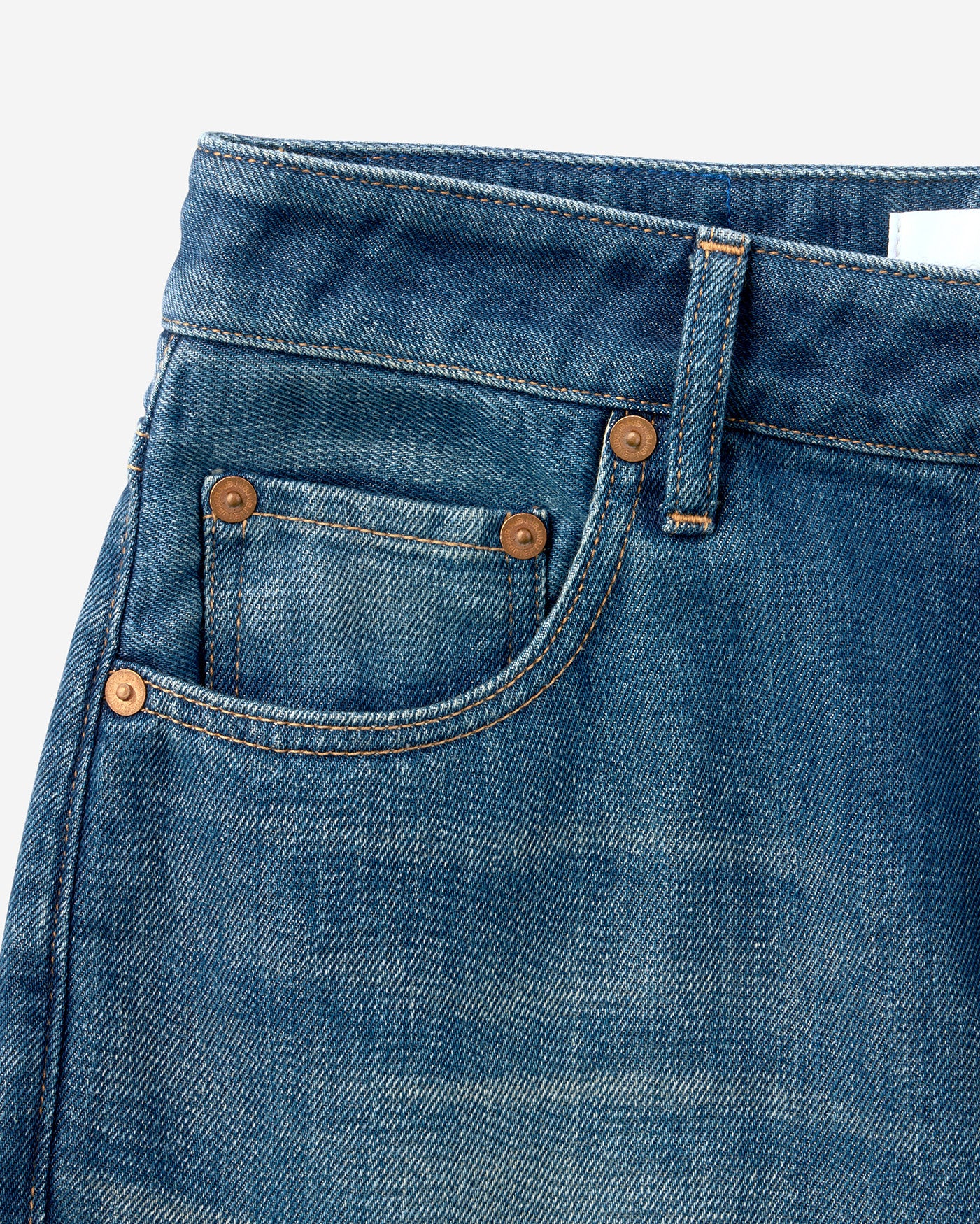 エイジングによってたどり着ける色落ちで、最もベストな状態を再現したミディアムインディゴカラー。