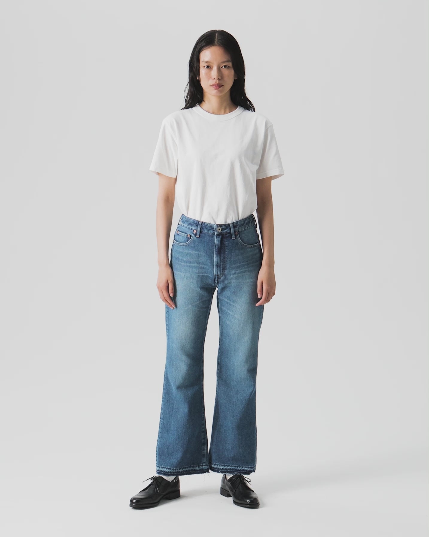 生地・シルエットともにヴィンテージ然としたフレアジーンズですが、現代的解釈によりアップデートされた1本。