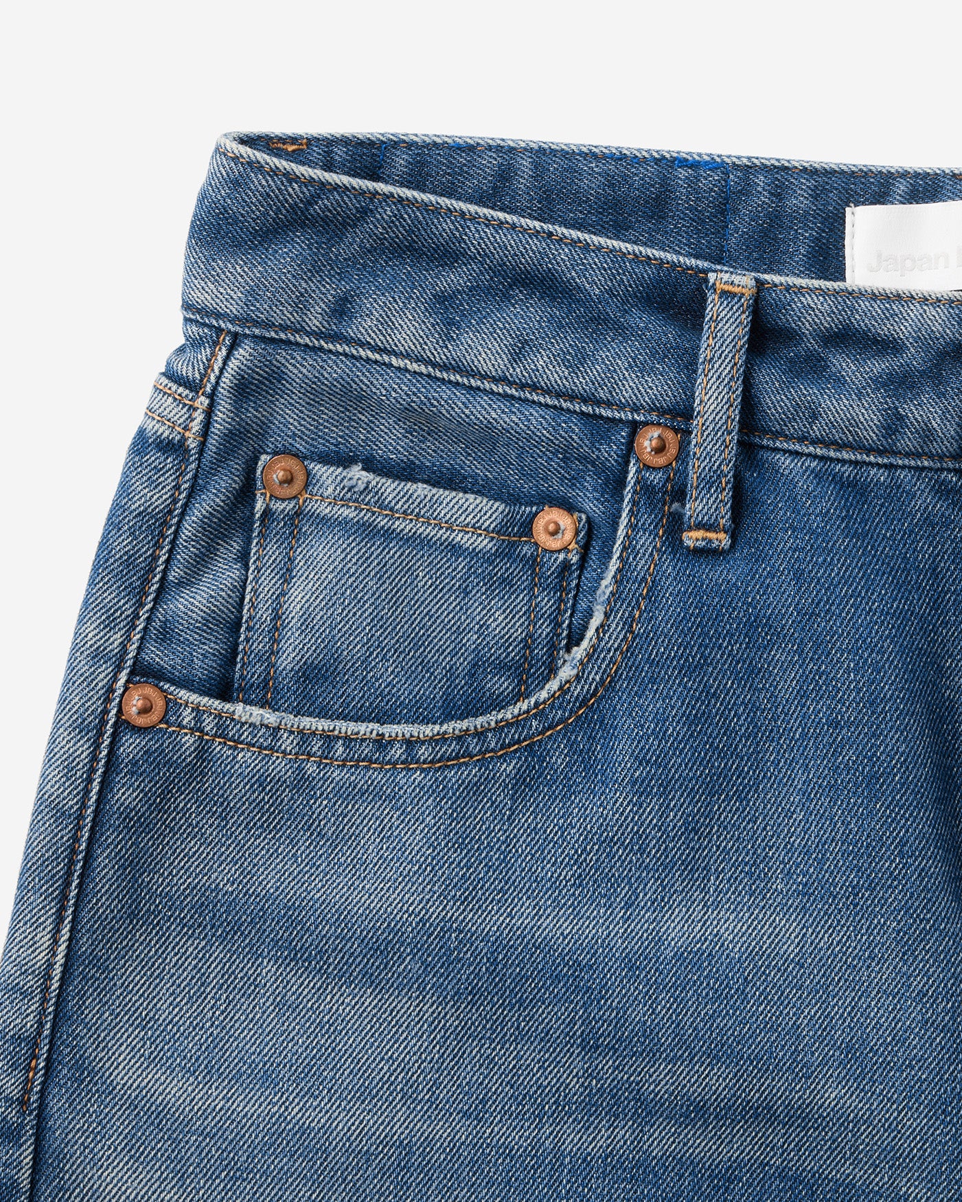 加工の内容を研究し、インディゴ染料の自然な褪色を忠実に表現をした鮮やかなブルーカラーが特徴。